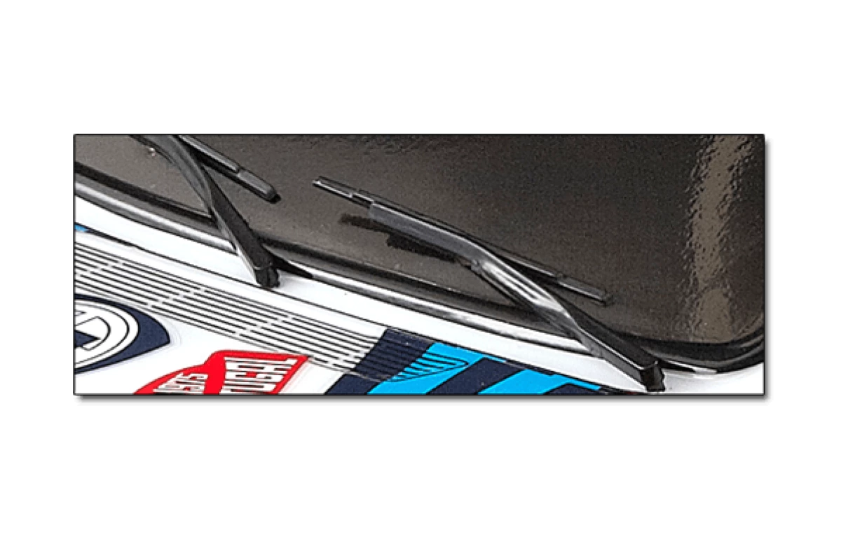 - Wiper; Wing mirror; Rear wing; Front/rear light bucket; Front grill; Roof air intake